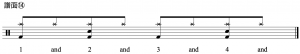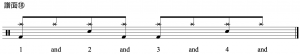 以前のハイハットを使ったパターンと同じように、全く問題なく叩けたという人はそのまま月の譜例まで読み飛ばして構いません。